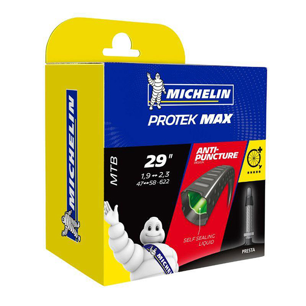 Chambre à air pour vélo 29 X 1.90/2.30 MICHELIN PROTEK MAX A4. Forme bosselée avec injection de liquide anti crevaison.